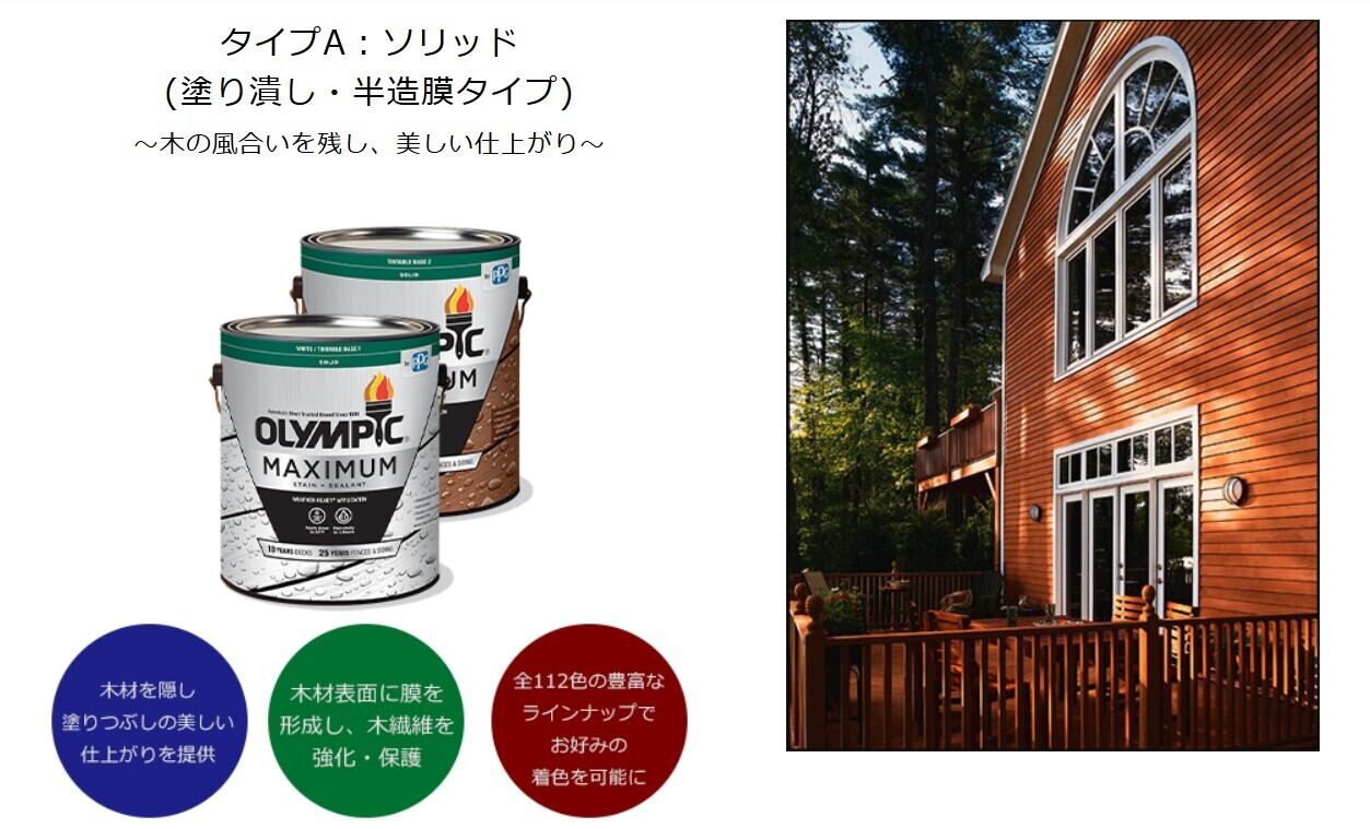 木部用半造膜タイプ 水性塗料 オリンピックマキシマム ソリッドカラー(塗りつぶし) 3.78L 20~28㎡分(2回塗り) OlympicMaximum