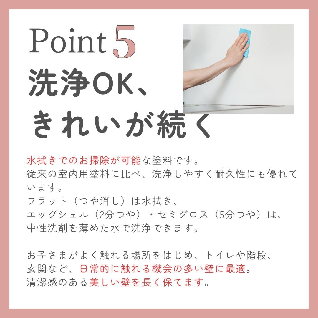 優れた隠蔽力を持ち、防かび抗菌機能があります。